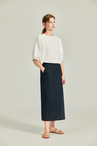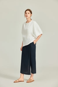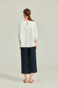 Crafted from 100% premium linen, this oversized white top is the epitome of effortless elegance. With its relaxed drape, rounded neckline, and dropped shoulders, it delivers both comfort and style in one. At first glance, the minimal silhouette feels timeless, but turn around and you’ll discover a delicate embroidery detail at the back corner — a subtle artistic touch that makes this piece truly special. Perfect for pairing with our skort, skirt, or your favourite casual bottoms, it’s a versatile staple designed for everyday ease and quiet sophistication.